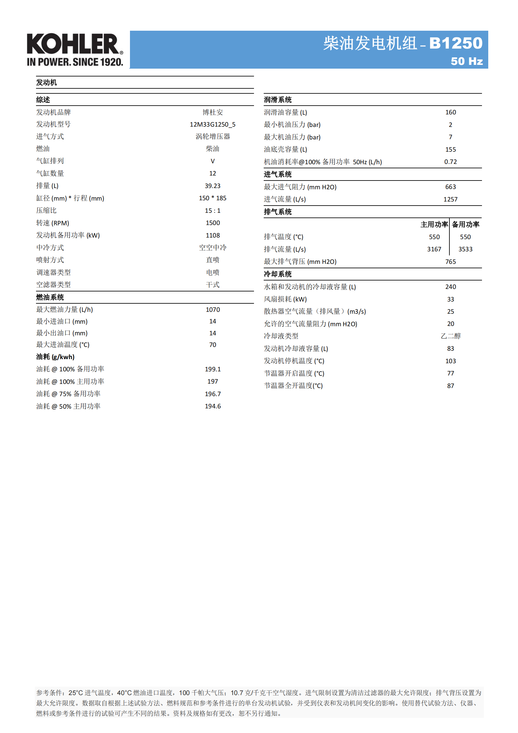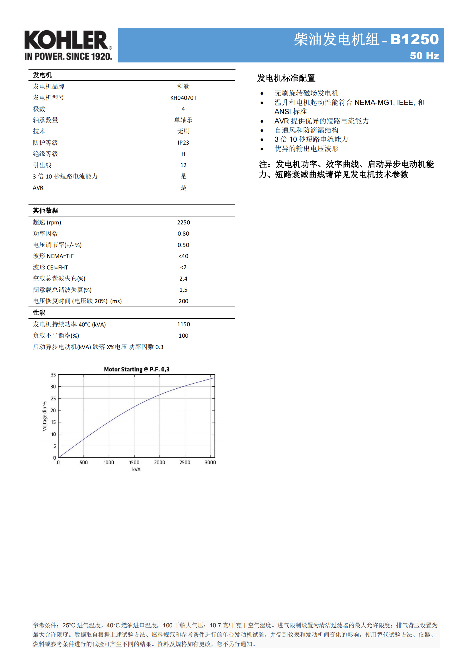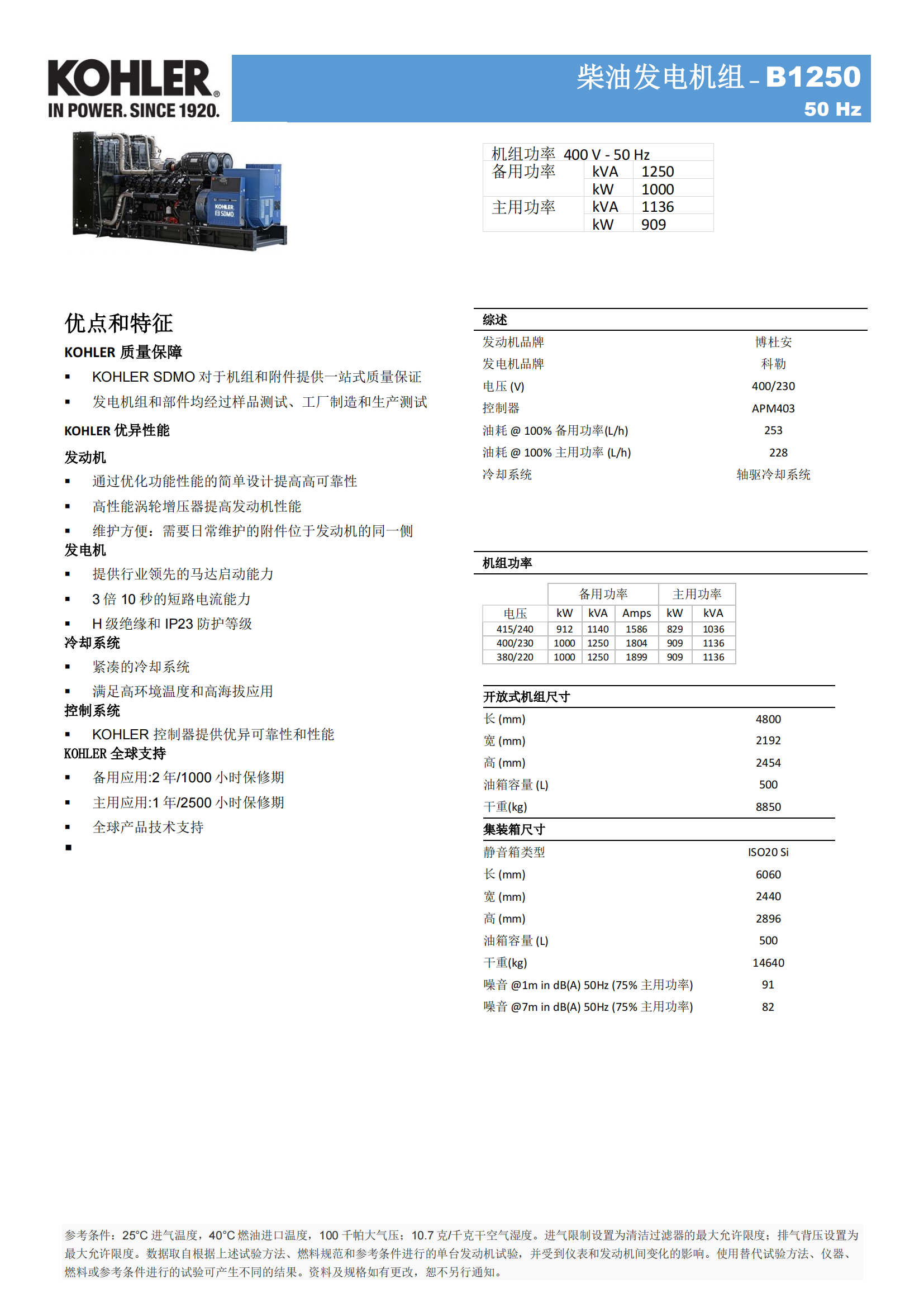 科勒發(fā)電機組B1250、四川發(fā)電機